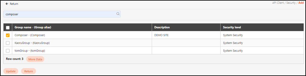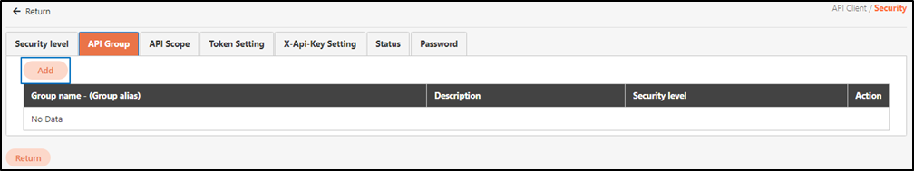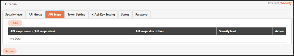 Assign clients to specific API groups or authorization scope groups for the client to have permission to call specific APIs. API groups that don’t need to be used can also be deleted here.
