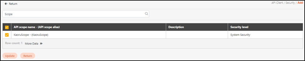 Click Add in authorization scope setting to access the setting page. Modify the desired fields, and click Update to save and exit.