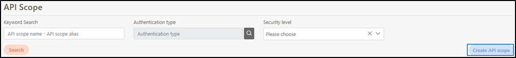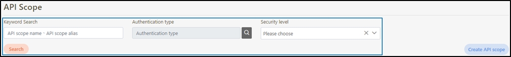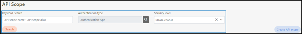 Enter the keywords, the authentication type or security level to search for the desired API scopes.