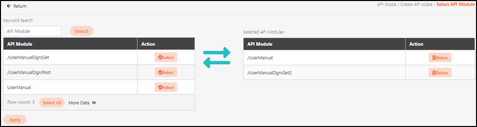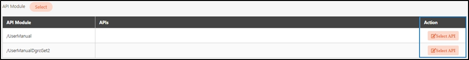 API Module: Click Select module to enter and select the API module currently mounted on the digiRunner platform.