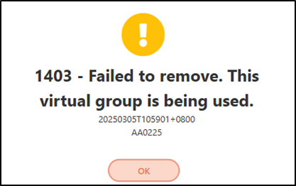 If this scope is set as available for clients under API Client > Security > API Scope, the error “1403 - Failed to remove. This virtual group is being used.” will appear, meaning that this API scope is in use and cannot be deleted.