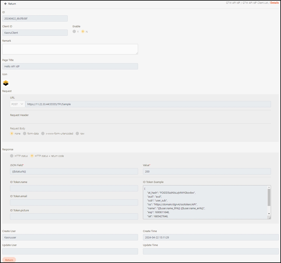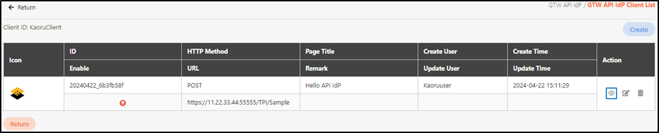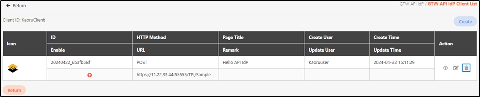 To view the details of GTW API IdP, you can search using the relevant information as keywords, and click on the