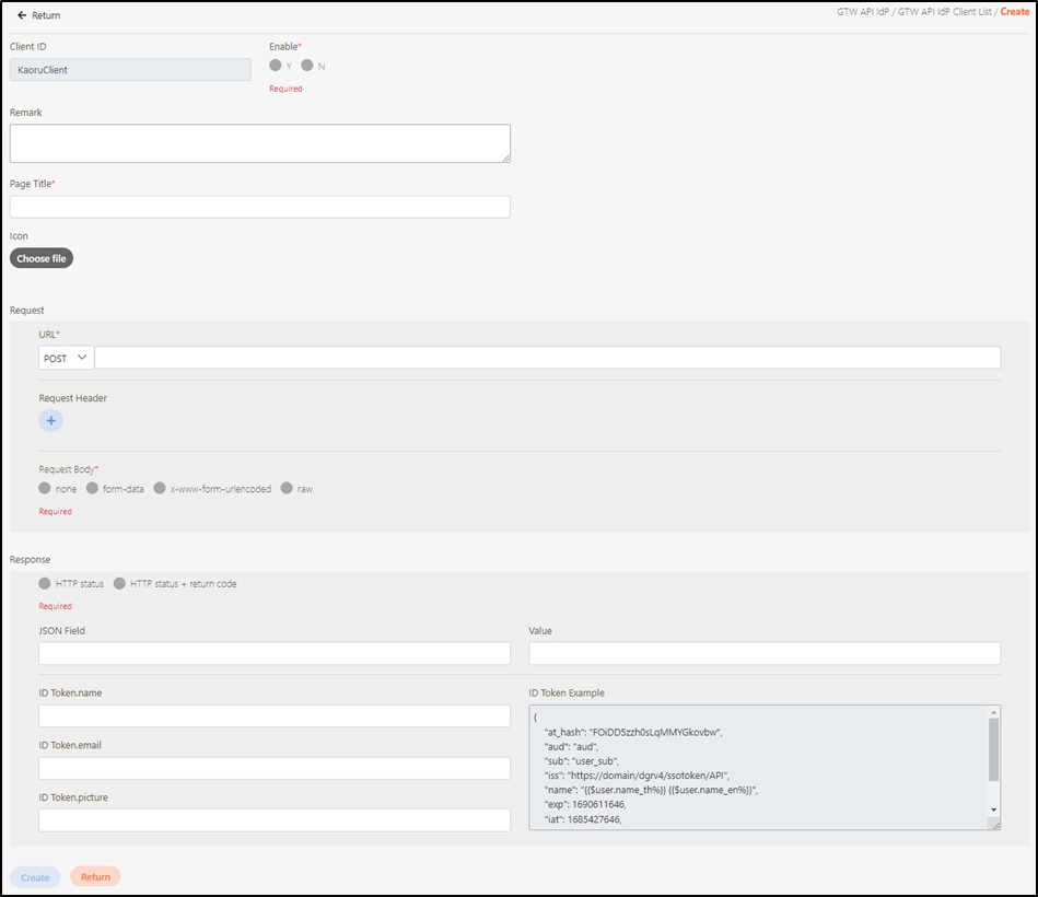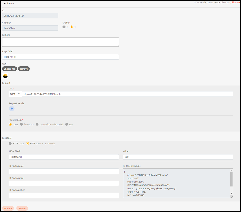Icon: Click Choose file to select and upload an identifiable GTW API IdP image. If no image is uploaded, the system will automatically use the digiRunner logo.
