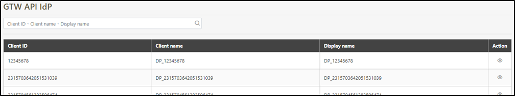 Client List of GTW API IdP