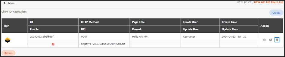 Search for the API IdP client you want to view details, and click on the