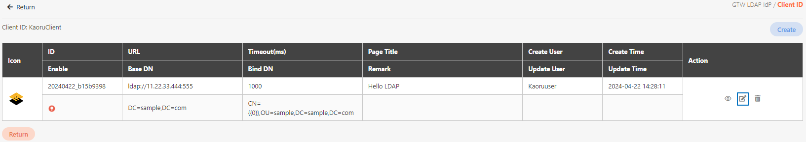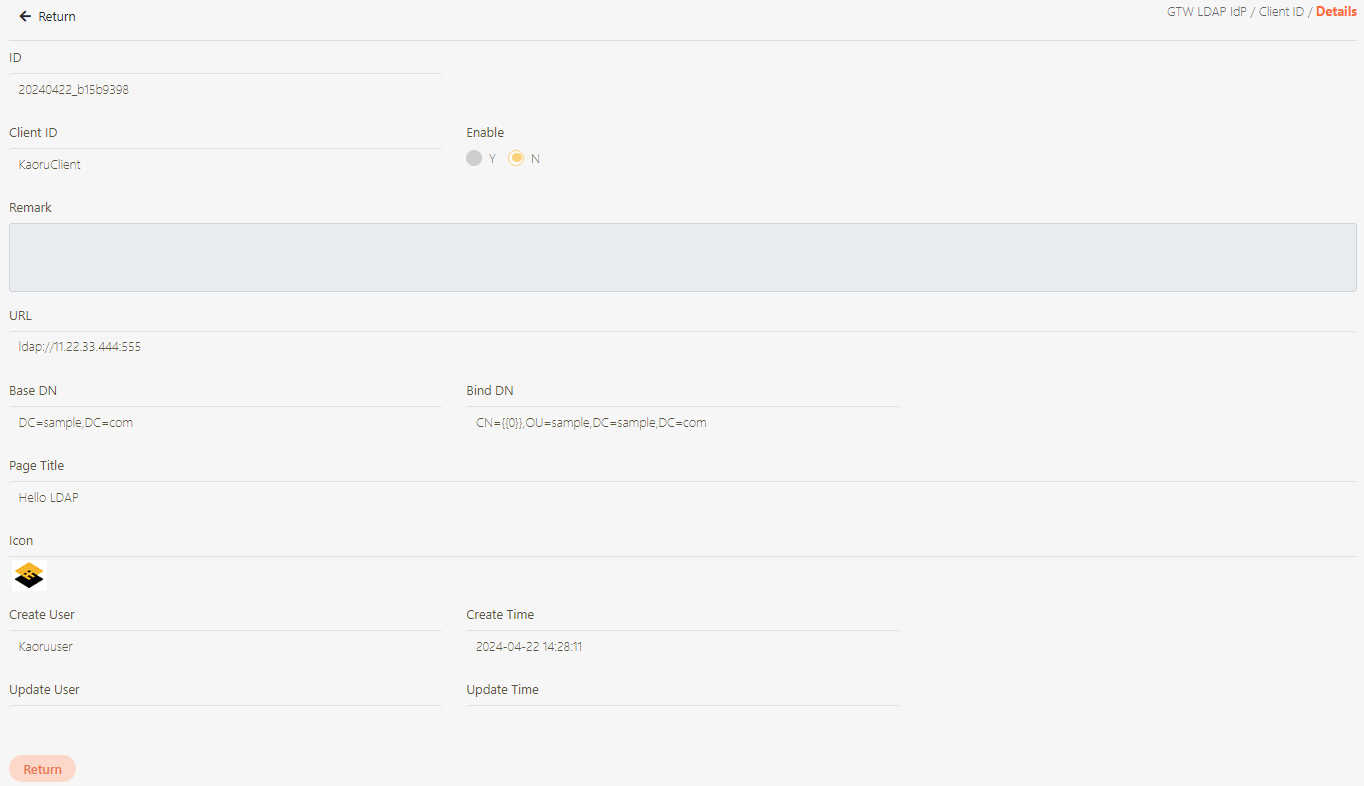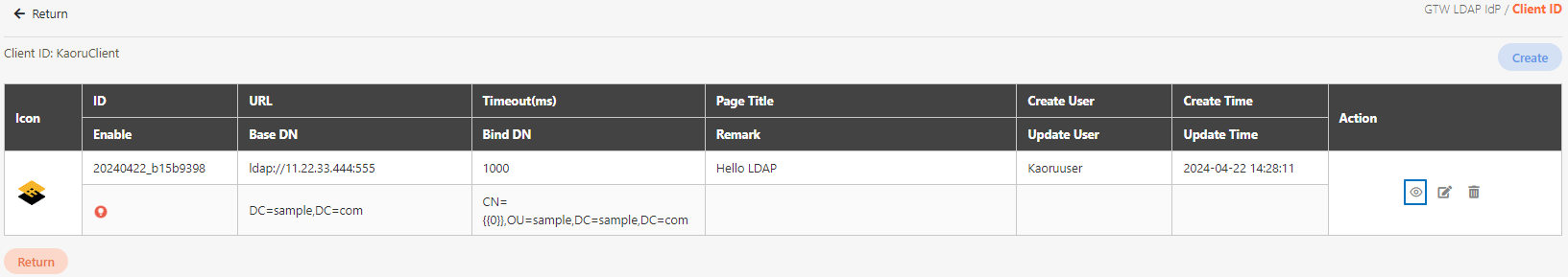 To view the details of GTW LDAP IdP, you can search using the relevant information as keywords, and click on the