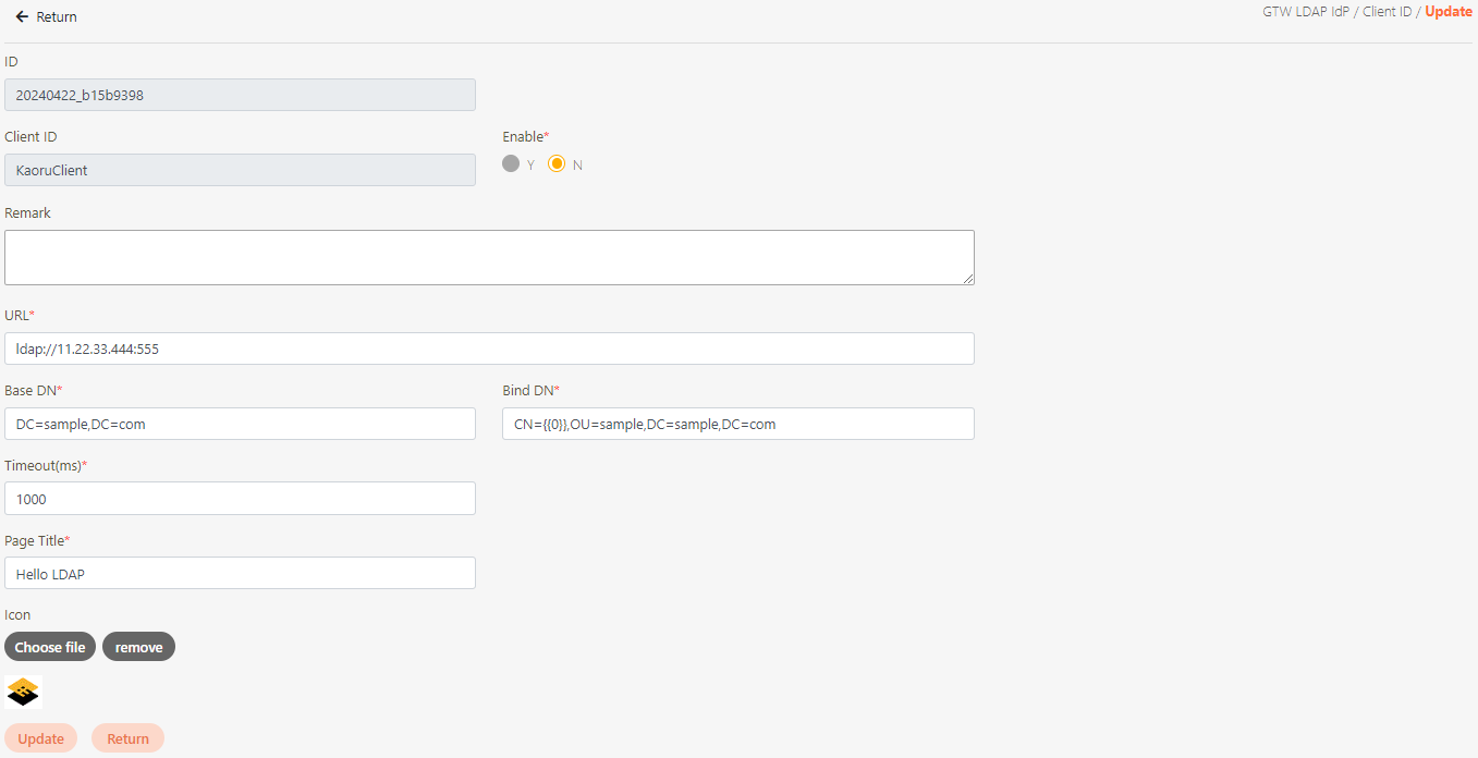 Icon: Click Choose file to select and upload an identifiable LDAP image.