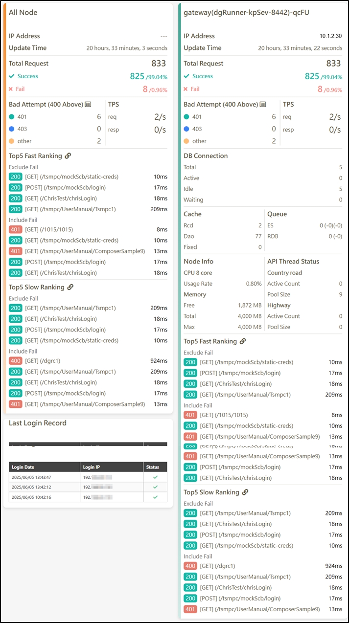Top5 Slow Ranking: Lists the top 5 slowest APIs by response time.
