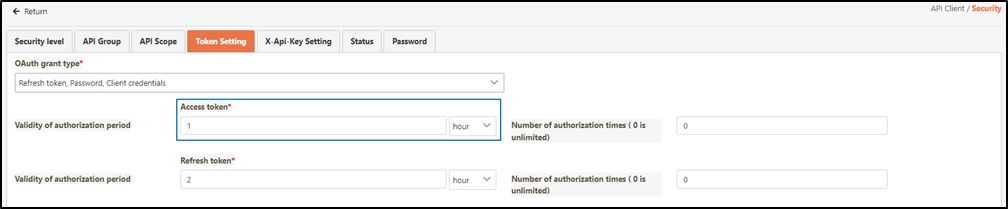 Click Update after changing the time for Validity of authorization period under Access token*.