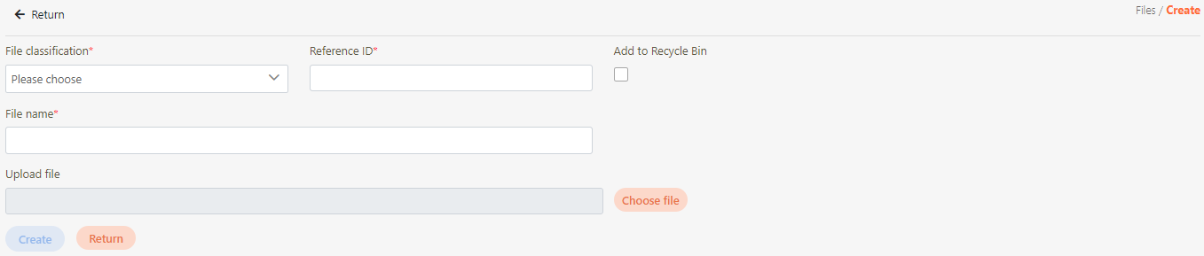 Reference ID*: The serial number of files depends on File classification, which means this file is attached to a specified data sheet under File classification. For example: One of the PK values in the API documentation table is (reference ID) = 1; if this entry of data has two files attached, the recording method is as follows: (1001, API documentation, 1)(1002, API documentation, 1). 1001 and 1002 are the PK values of this table.