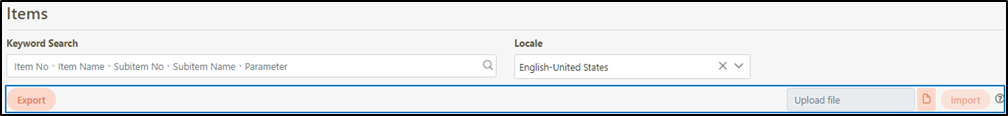 To modify multiple items at once, click Export to export the items as an .xlsx file. Modify the desired fields, click on the