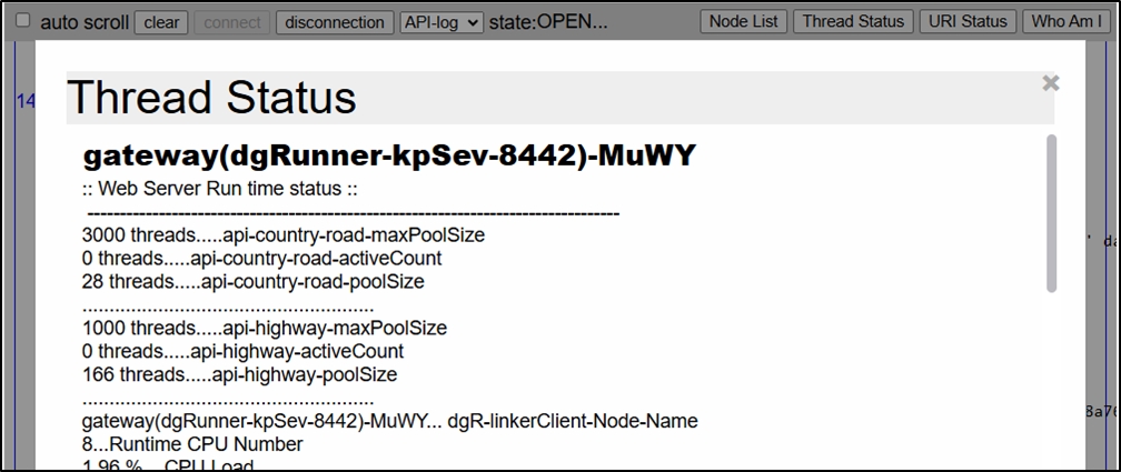 This section includes descriptions for Node List, Thread Status, URI Status, and Who Am I.