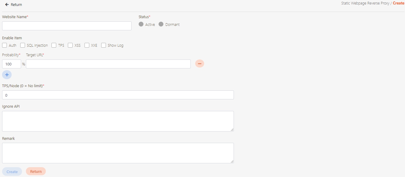 Path: System Configs >Static Webpage Reverse Proxy