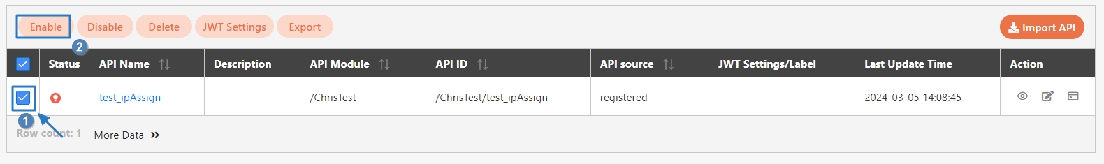 A confirmation window will pop up, click Confirm to finish enabling the API, and the status light will turn green