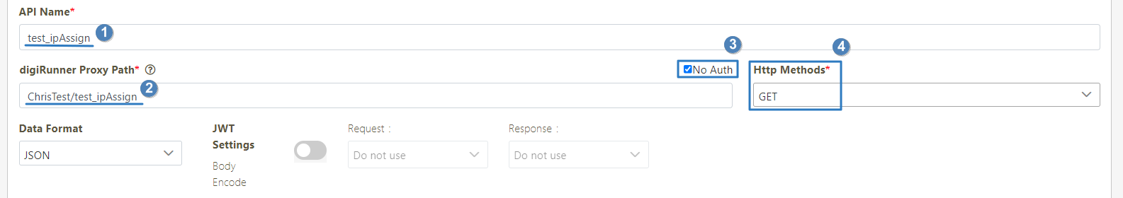 Fill in the required fields: API Name, digiRunner Proxy Path and Http Methods.