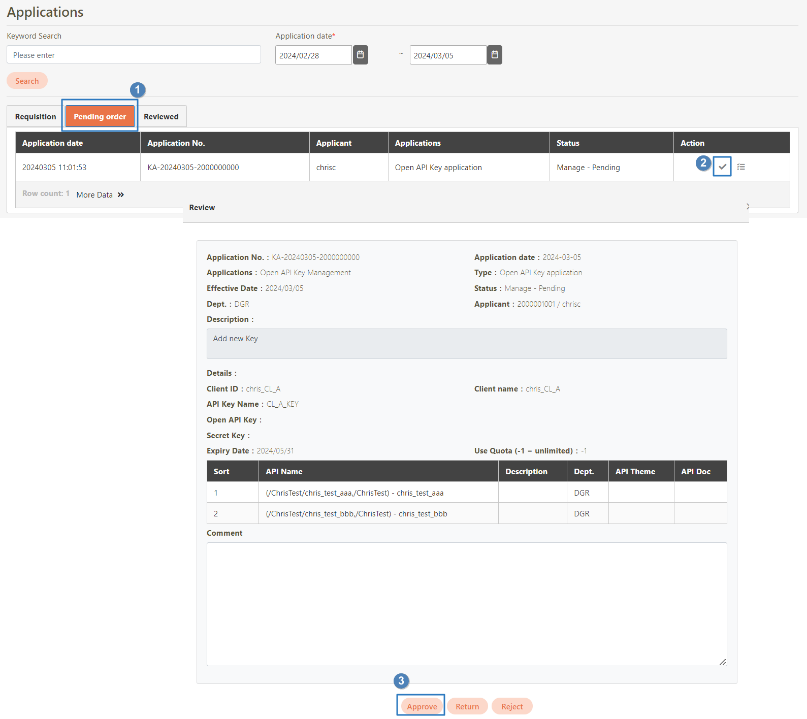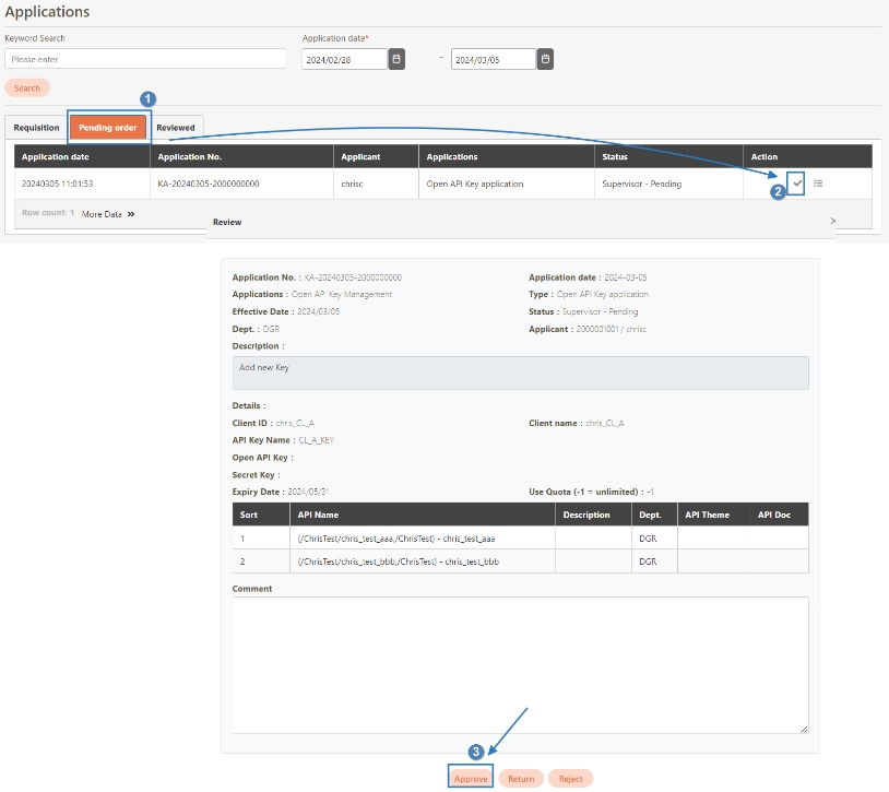 Click on the Sign-off icon to enter the sign-off page, and click Approve to complete the second review to obtain the API Key.
