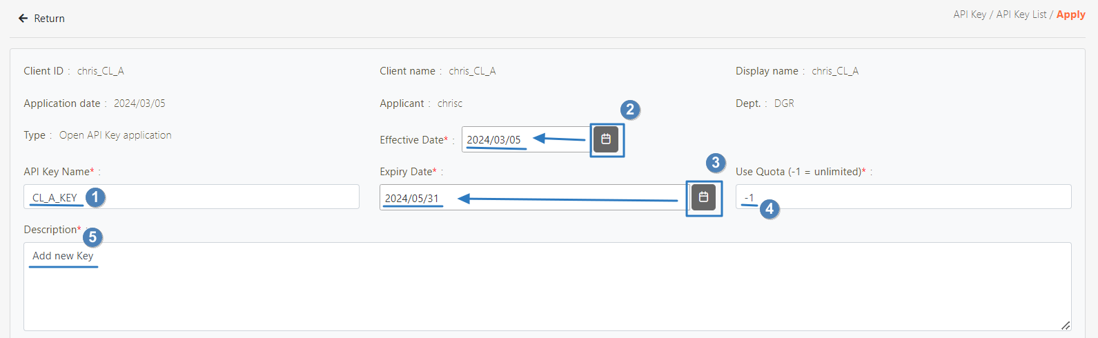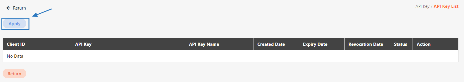 Enter the API Key list of that user and click Apply to enter the apply page.
