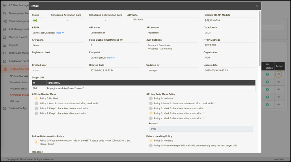 When a user receives an X-API-Key formatted as this: YjNmNzYzNzEtMTQwNC00OTM5LTliODEtZWY3MjM4NmRkNGJm, it is not immediately clear which APIs the key authorizes. Using the digiRunner interface, you can query and obtain detailed authorization information.