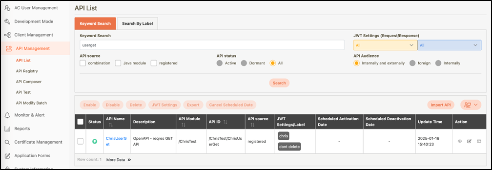 Go to API Management > API List to access the page.