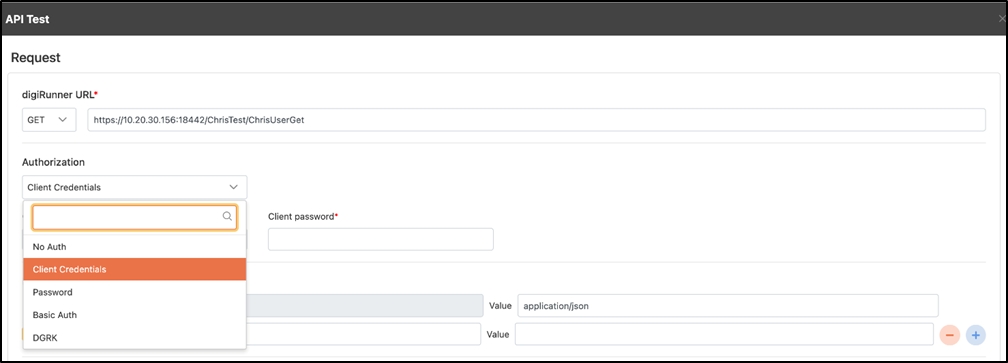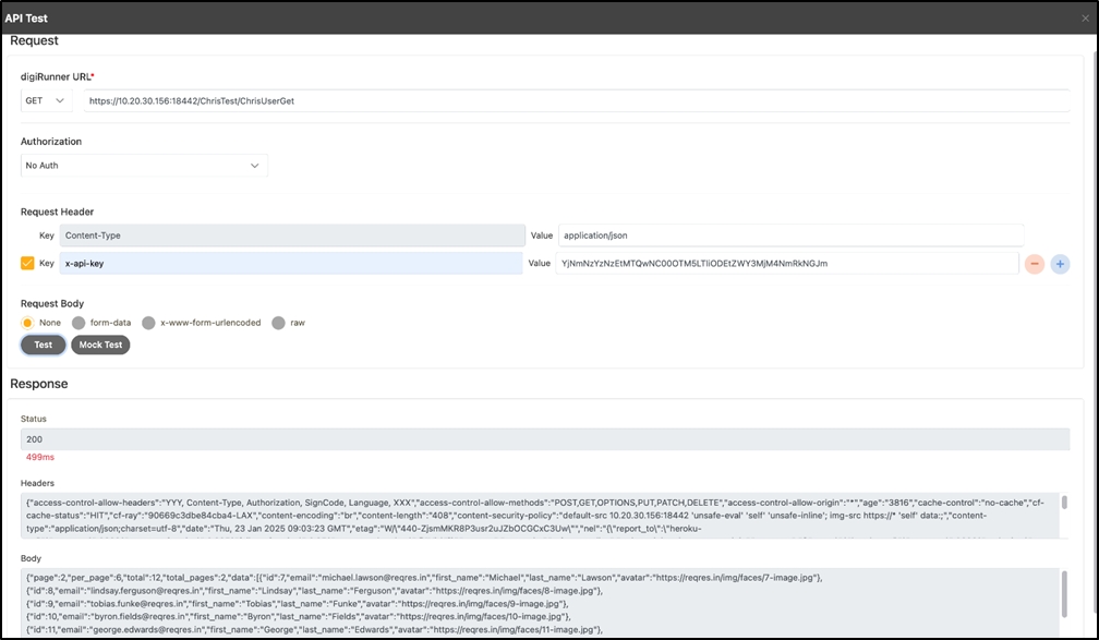 x-api-key, and the Value as the issued X-API-Key. This action will include the parameter in subsequent API calls to complete the validation with digiRunner.